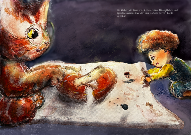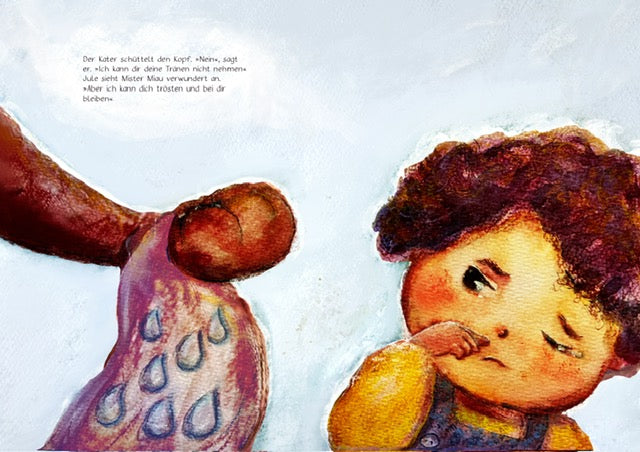 Meine Geschichten und Illustrationen entstehen durch meine Liebe für Kinder. Mir liegt jedes Kind am Herzen. Jedes Kind darf sich als wertvoller Schatz für diese Welt begreifen. Jedes Kind darf an die eigenen Stärken glauben. Dieser Gedanke trägt mich durch alle Herausforderungen, jeden Pinselstrich, jedes geschriebene Wort und jede Buchbindung.