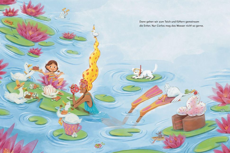 So liebevoll, witzig, herzallerliebst, urkomisch und Fantasie-beflügelnd! Ein wahrere Bilderbuchschatz für alle Omas, die die Welt ihrer Enkelkinder regenbogenbunt und tausend-Urlaubs-schön zaubern.