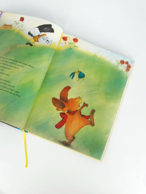 Die Seiten sind in diesem Sammelband dünner als bei den klassischen Bilderbüchern aus dem NordSüd Verlag. Dafür ist das Buch aber vollgepackt mit Vorlesefreude, ist halb in Leinen eingehüllt und verfügt zur besseren Orientierung über ein Lesezeichenband.