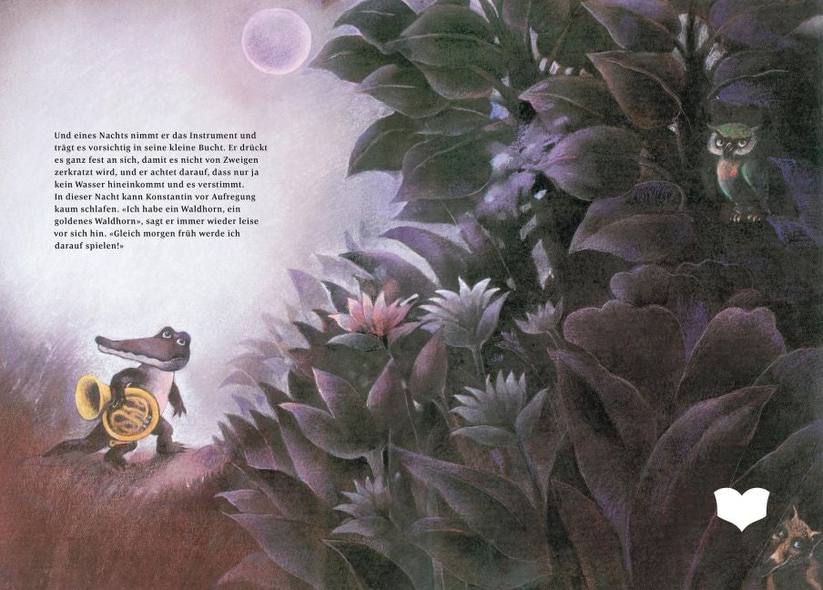 Konstantin ist der Außenseiter der Krokodile im Sumpf. Ihm fehlen die Worte und der Mut. Bekümmert bleibt er lieber allein. Bis er eines Tages ein Instrument findet, dass sein Leben für immer verändern soll.