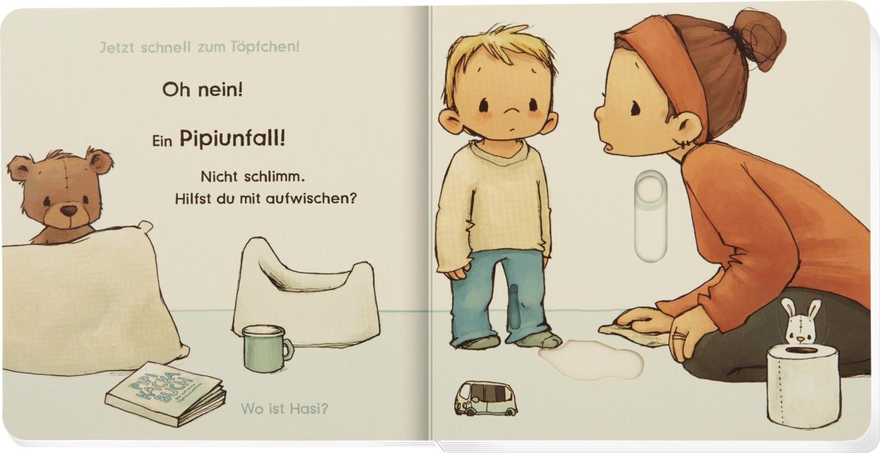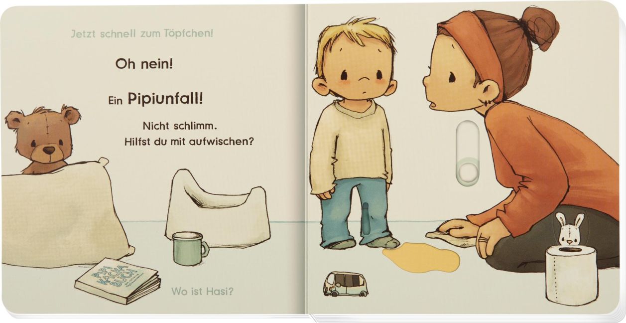 - Dieses Pappbilderbuch begleitet Kinder auf ihrem Weg, ihr Pipi und Kacka besser zu verstehen. Dabei zeigt es einfach, was passiert ohne zu belehren oder Druck zum Trockenwerden aufzubauen. Es zeigt sich verständnisvoll, wenn das Pipi mal nicht dort landet, wo es das Kind beabsichtigt hat. Diese entspannte und entwicklungsorientierte Grundhaltung zeigt Kindern, dass sie auch beim Trockenwerden in ihrem eigenen Tempo genau richtig sind und geliebt werden.