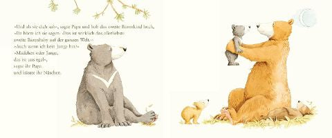 Die Bärenkinder können nicht schlafen. Sie fragen sich, wen ihre Eltern am liebsten haben. Sie selbst können es ja kaum sein. So zählt jedes Bärenkind einen selbst empfundenen Makel auf, den sie an sich selbst wahrnehmen. Wie Mama und Papa Bär ihren Kindern wohl vermitteln können, dass sie alle wundervoll und richtig sind, genau wie sie sind? Und wie könne sie ihnen zeigen, dass ihre Liebe so groß ist, dass sie für alle Geschwisterkinder reicht? Und ob sie anschließen wohl gut einschlafen können? Das lest ihr am besten selbst.